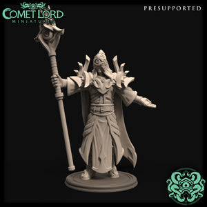 This includes the Cultists and Cult Leaders of The Comet Lord miniatures. All of the miniatures sit on a medium(25.4mm) bases. There are 5 cultist poses, each includes a dual wielding variant. There are 3 Cult Leader poses, 2 include staff wielding variants.